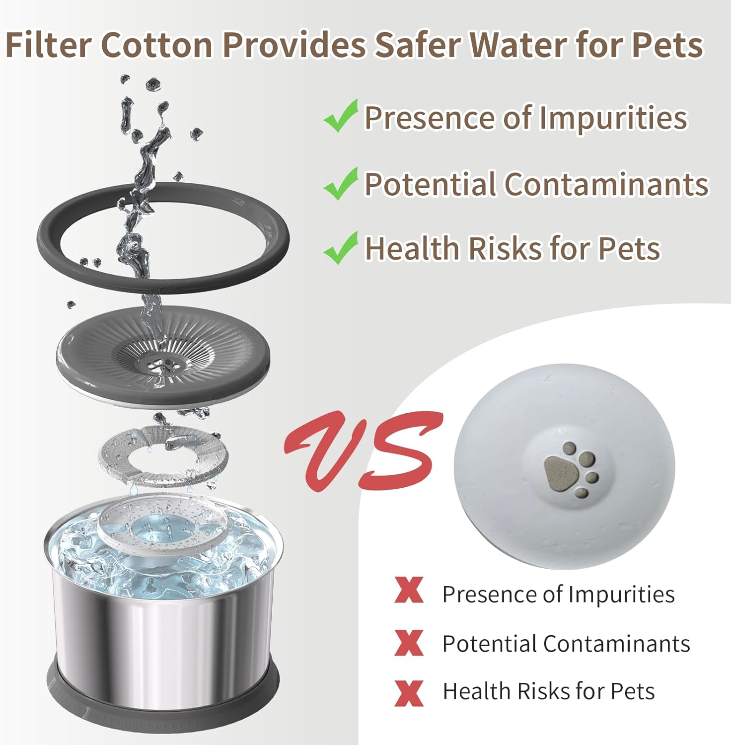 - Keeps Water Fresh: Equipped with a removable filter made of non-woven fabric, activated carbon, and ion exchange resin, our no mess dog water bowls efficiently remove impurities and chlorine from the water. For optimal performance, we recommend replacing the filter every two months.