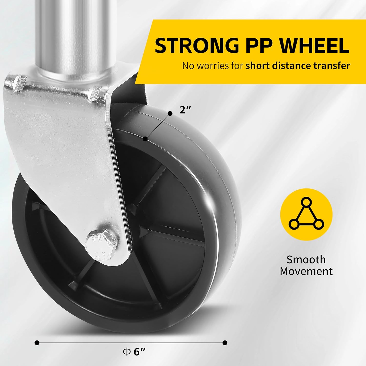 - Smooth-Rolling Nylon Wheel: A 6″ diameter x 2″ wide nylon wheel ensures smooth rolling across various surfaces, facilitating maneuverability and minimizing friction during trailer adjustments.